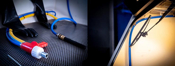The wet blasting cabinets that Surface Prep provide are the perfect alternative to dry blasting. Allowing a virtually dust-free process with a softer surface finish due to the abrasive media being suspended in the water. If the application requires an optimal cosmetic finish, wet blasting is by far the better option.